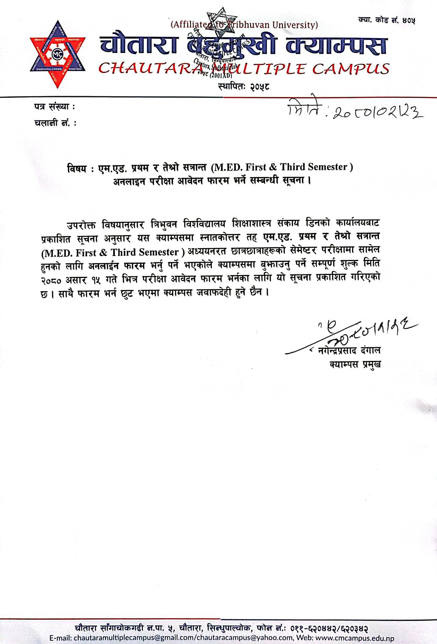 | Notice regarding filling up the exam form for M.Ed./MSSEd. 2nd Semester 2080 |