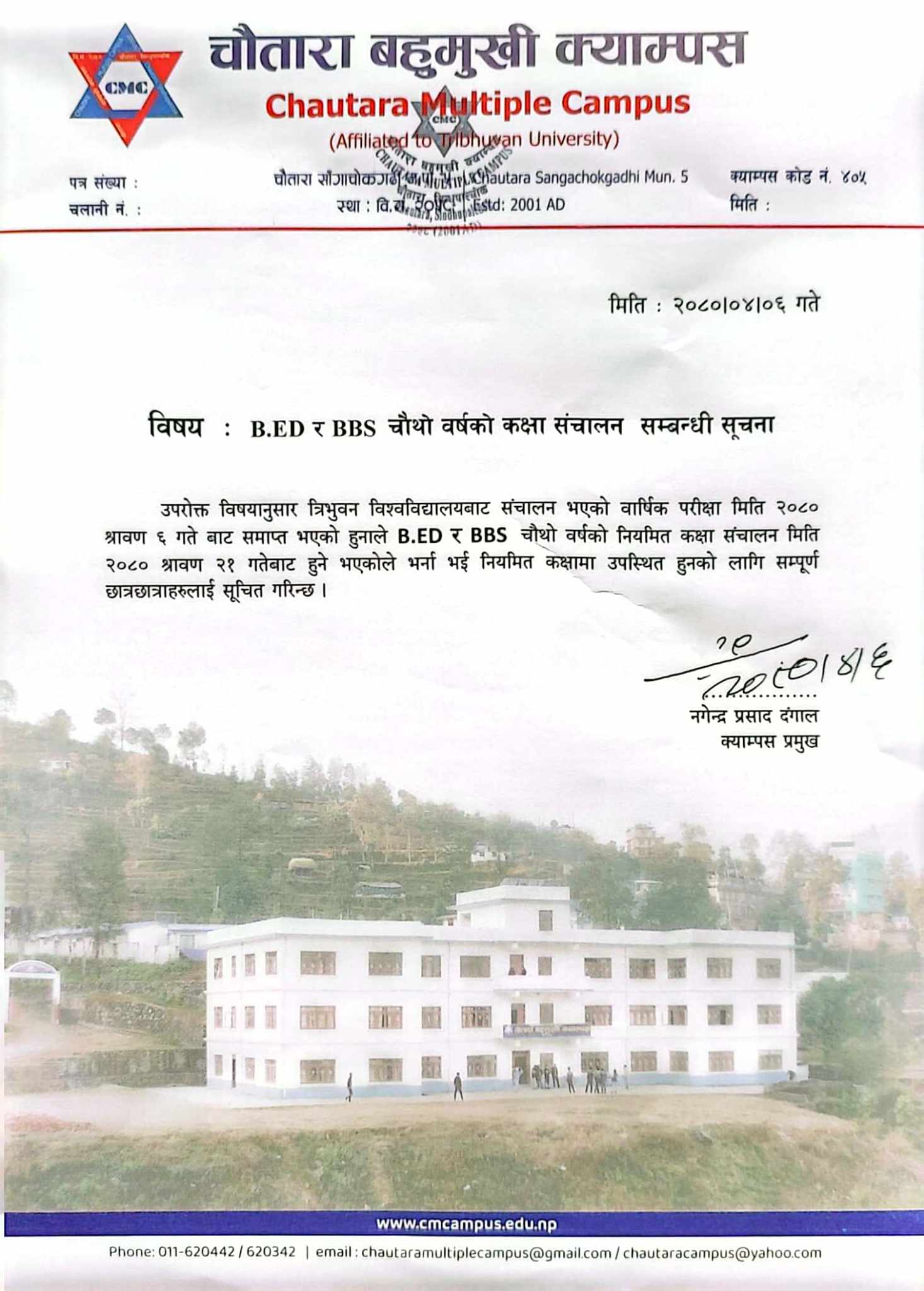 | B.ED र BBS चौथो वर्षको कक्षा संचालन सम्बन्धी सूचना . |
