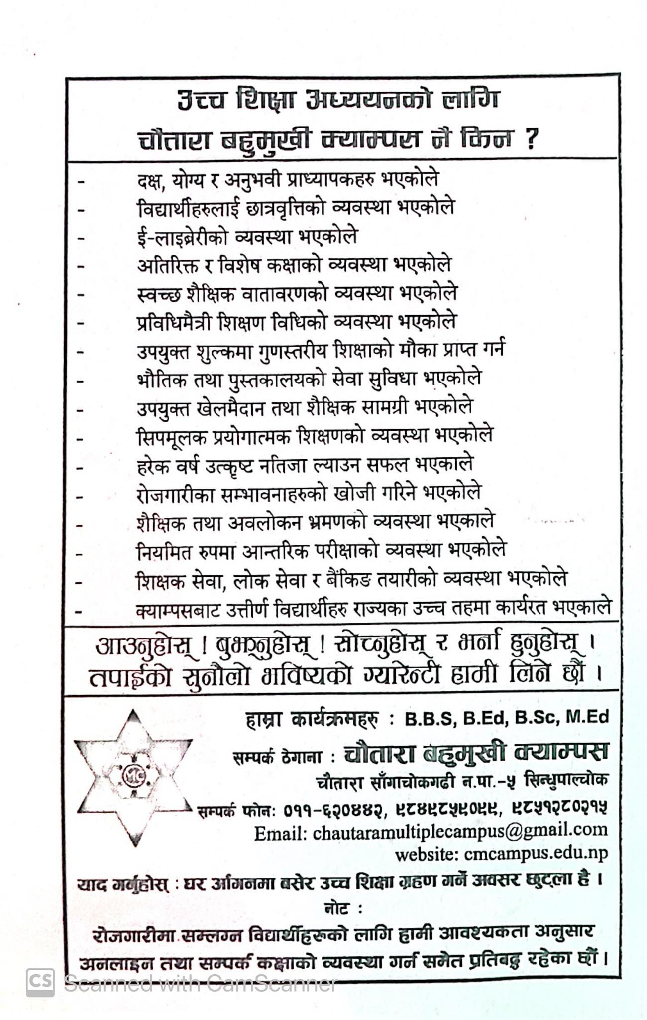 | उच्च शिक्षा अध्ययनरको लागि चौतारा क्याम्पस नै किन ? |