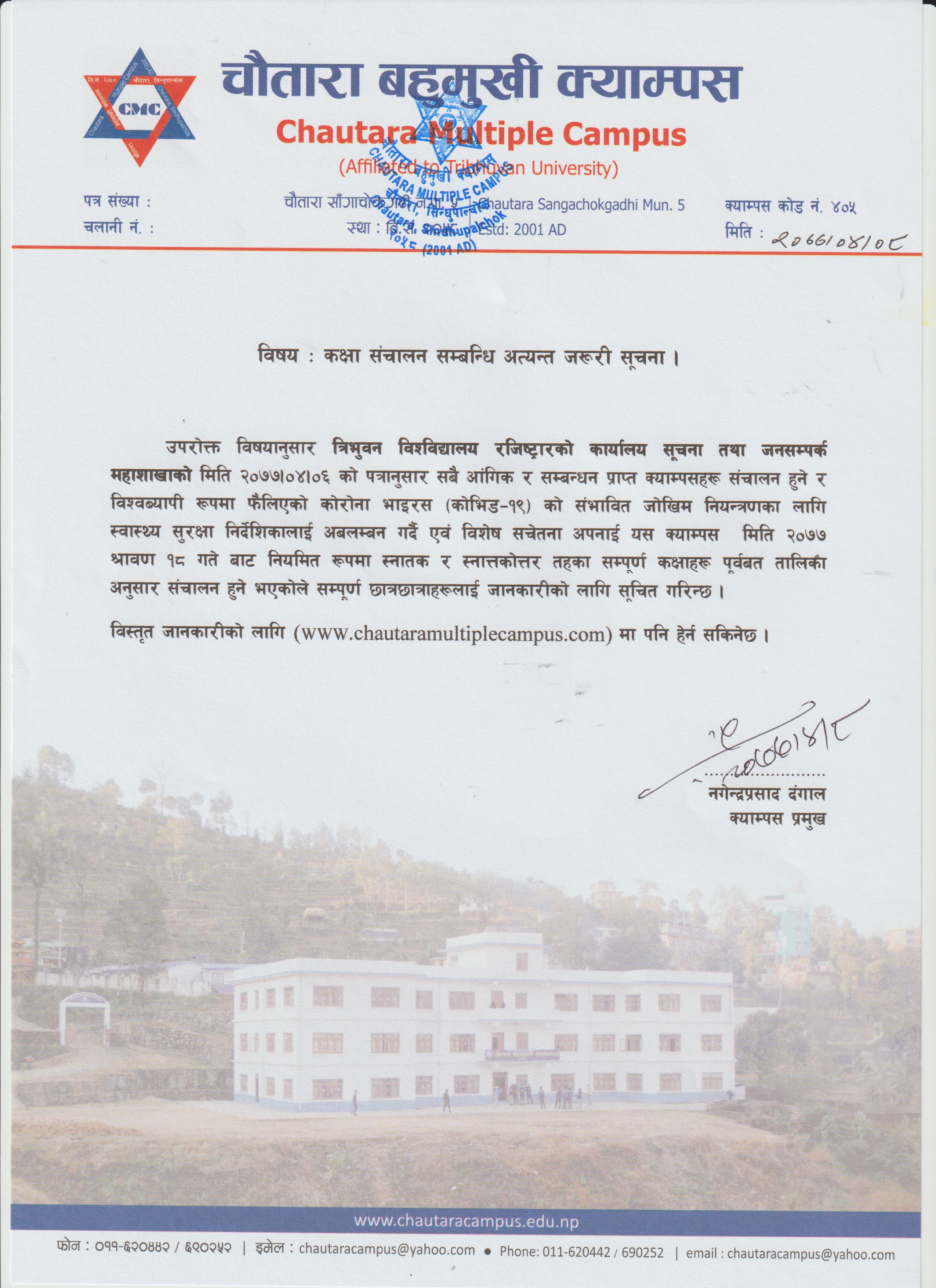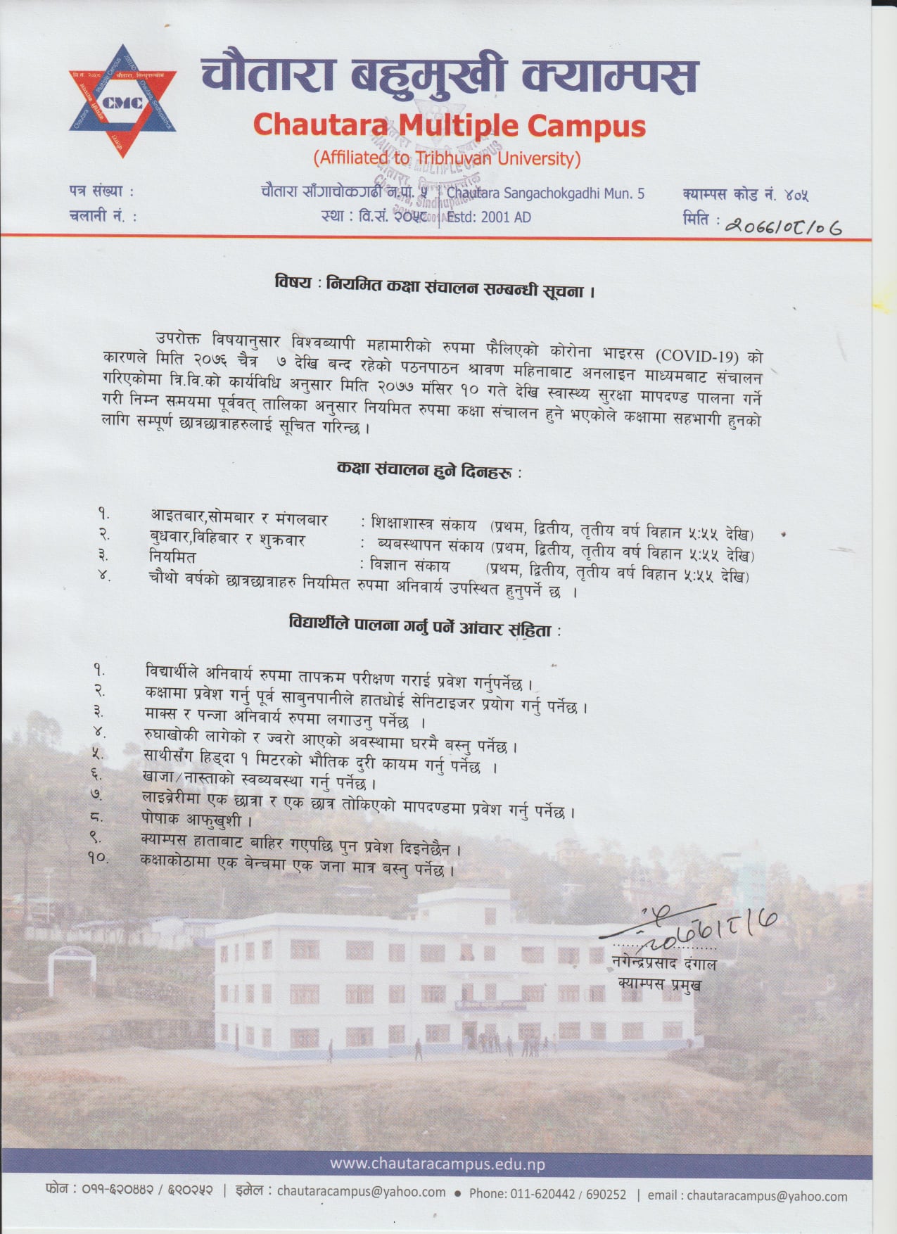| नियमित कक्षा संचालन सम्बन्धी सूचना |