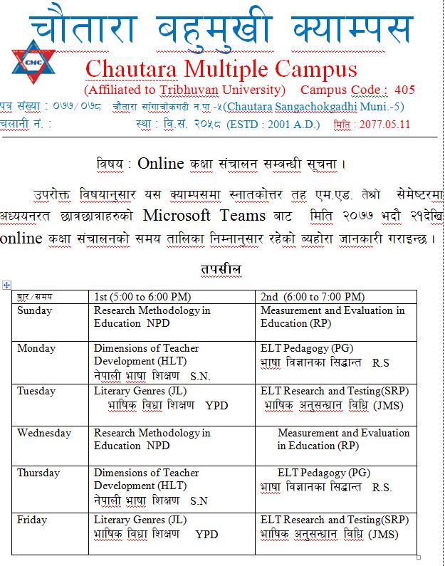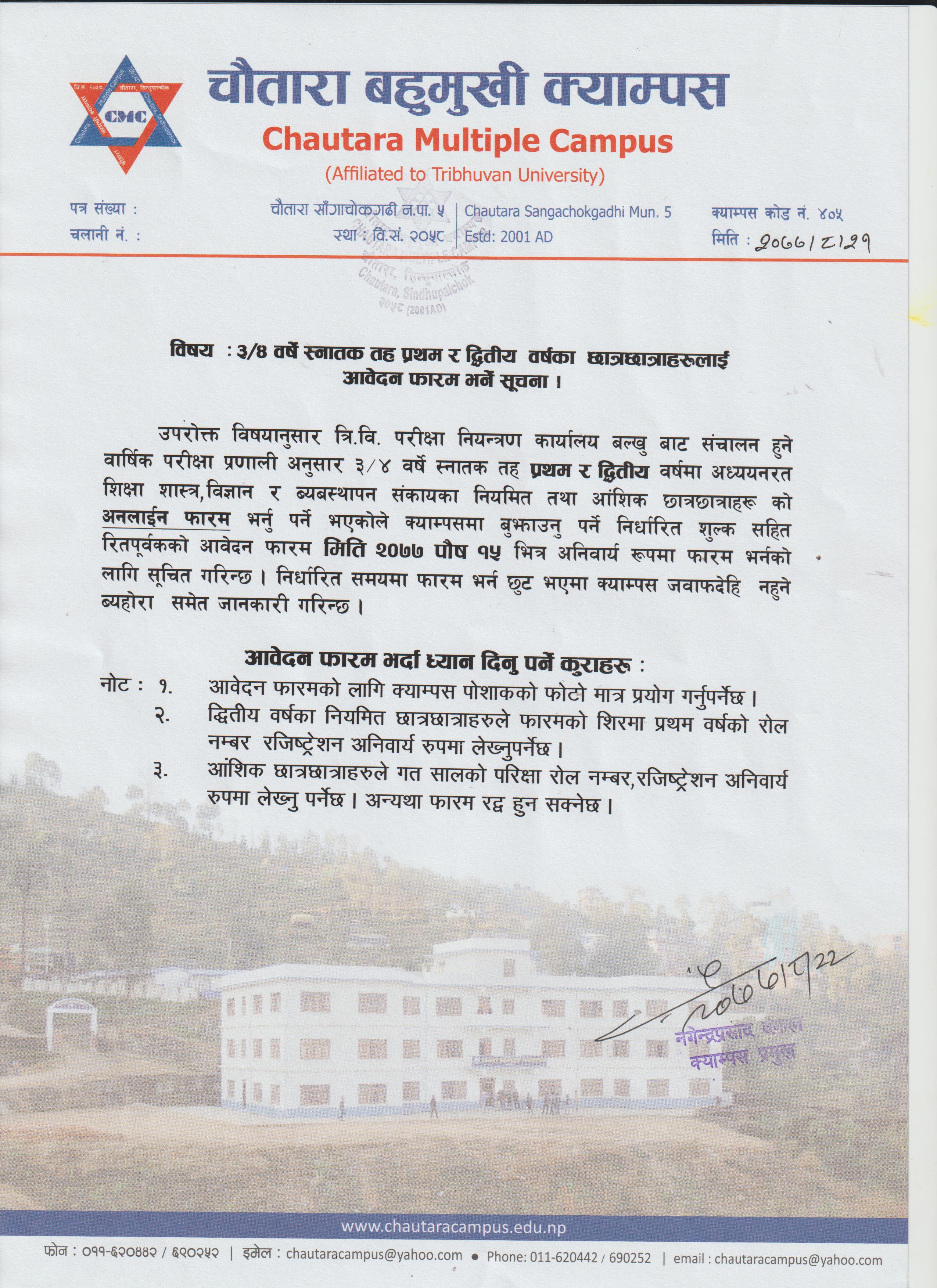 | ३/४ वर्षे स्नातक तह प्रथम र द्धितीय वर्षको छात्रछात्राहरुलाई परीक्षा आवेदन |